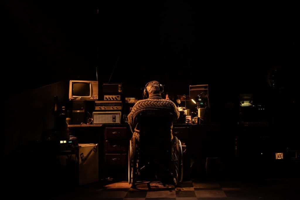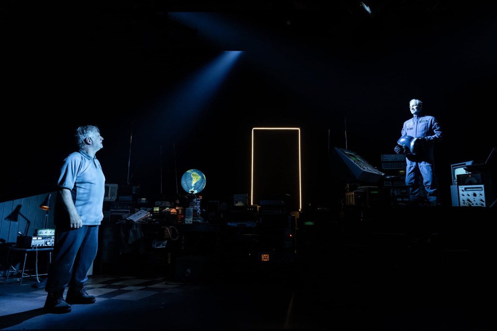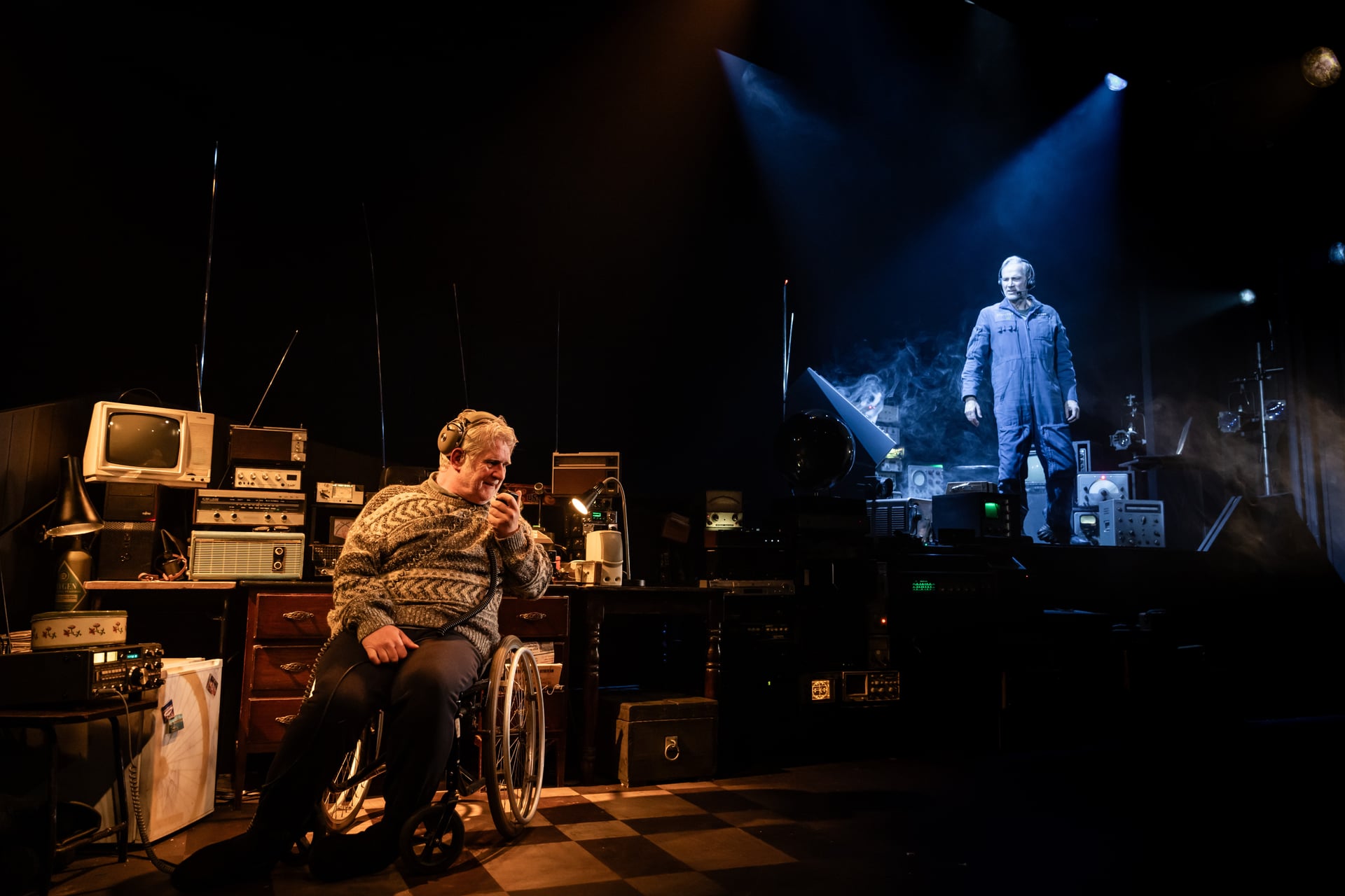Static Production Photos Peacock Theatre Moonman: Dan Gordon Spaceman: Seán Mahon Voiceover: Ciarán McGlynn Voiceover: Lesa Thurman Writer: Jimmy McAleavey Director: John King Set and Costume Designer: Alyson Cummins Lighting Designer: Suzie Cummins Composer and Sound Designer: Rob Moloney Movement Director: Gabrielle Moleta Production Research: Tanya Dean Hair and Make Up: Val Sherlock Illustration of Jimmy McAleavey: Louise Boughton Graphic Design: AAD ©Rich Davenport